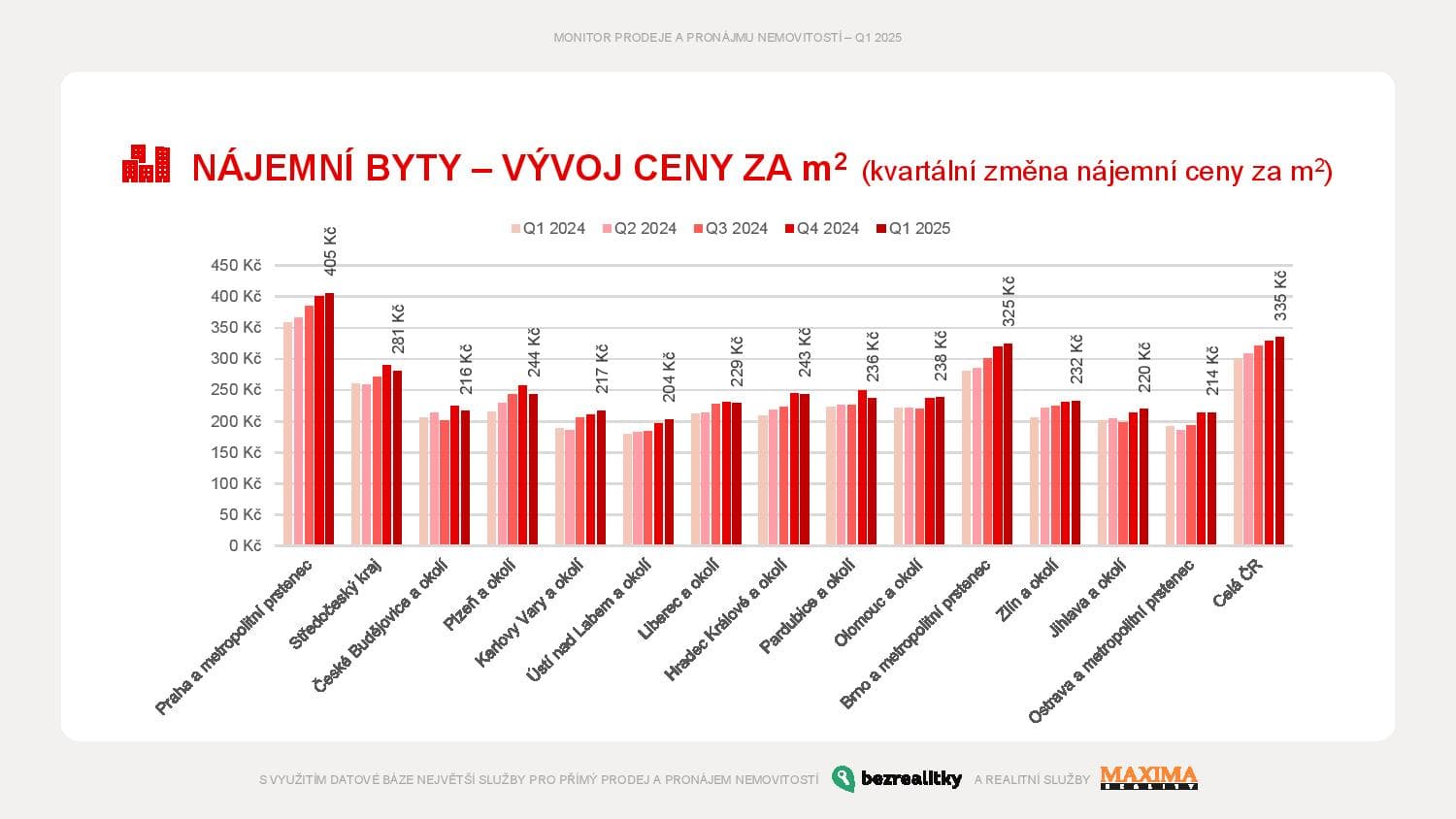 Zatímco koncem roku 2024 nájmy výrazně rostly, začátek letošního roku přinesl uklidnění. Trh se částečně nasytil a počet zájemců o nové bydlení se výrazně snížil.