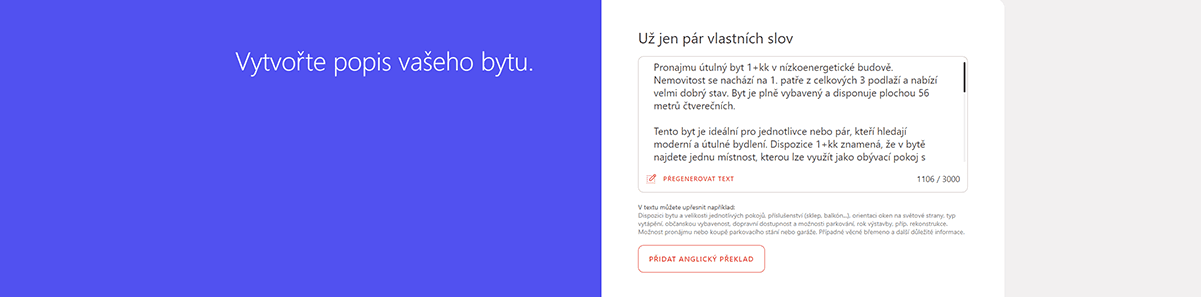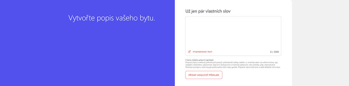 4) Až se dostanete ke kroku „Vytvořte popis vašeho bytu“, klikněte na odkaz „Vygenerovat text“.