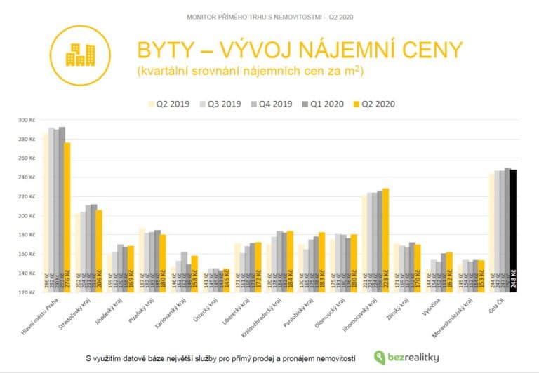 Počet napřímo pronajatých bytů se ve druhém kvartálu přiblížil 13 tisícům. To je skoro o polovinu více než před rokem a o 40 % více než na začátku roku. Důvodů je několik. V první řadě se kvůli omezením výrazným způsobem zvýšila dostupnost bydlení na největším trhu – tedy v hlavním městě. Světový pandemický vývoj zatím neumožnil návrat masového turismu a byty, určené původně na krátkodobé pronájmy, tak zůstanou pro lokální rezidenty k dispozici pravděpodobně až do poloviny příštího roku. To se odrazilo v poklesu nebo zastavení růstu cen nájemního bydlení ve většině krajů. Především v Praze je pád cen výraznější a přišel dříve, než se očekávalo.